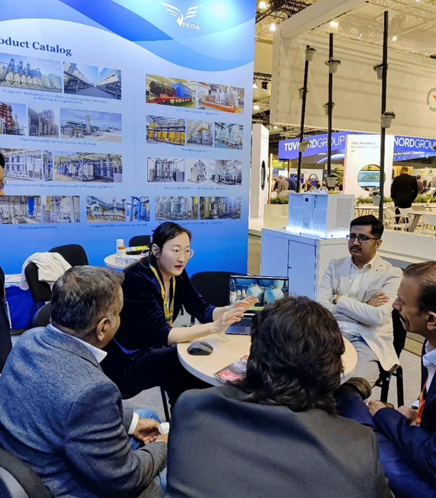 在汉诺威工博会现场,飞达捷能带来的碳捕集联产氮气技术成为展区一大亮点。该技术能够将工业烟气中的二氧化碳与氮气同步回收利用,实现“变废为宝”: